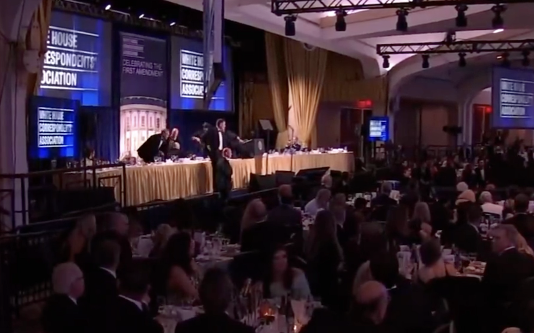 Las aparentes detonaciones se produjeron fuera de la sala de baile donde se estaba celebrando la cena, la cual estaba presidida por una mesa sobre un escenario en la que estaban sentados el presidente y la primera dama, que fueron evacuados poco después de escucharse los aparentes disparos.