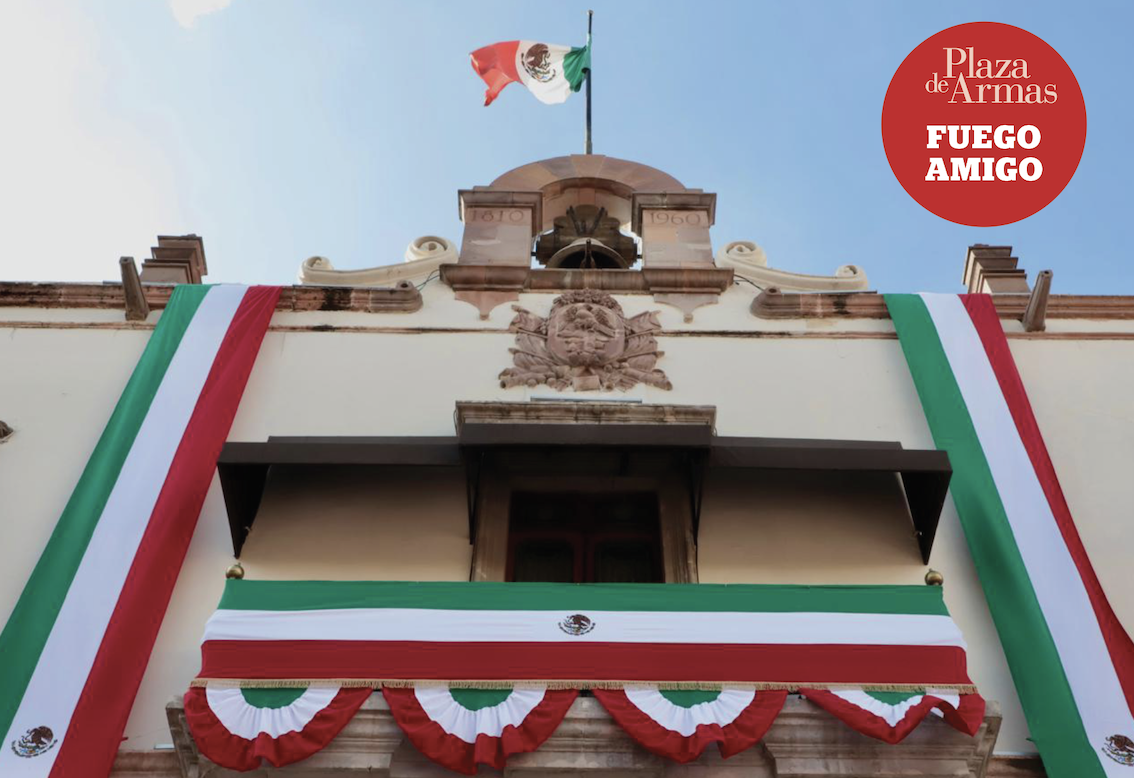 TODO LISTO PARA EL GRITO. Así fue arreglado el balcón central de la Casa de la Corregidora, la sede de los conspiradores de 1810, para la ceremonia de la noche del próximo lunes 15. Desde ahí el gobernador Mauricio Kuri cumplirá con el rito de vitorear a la heroína y los héroes de nuestra Independencia.