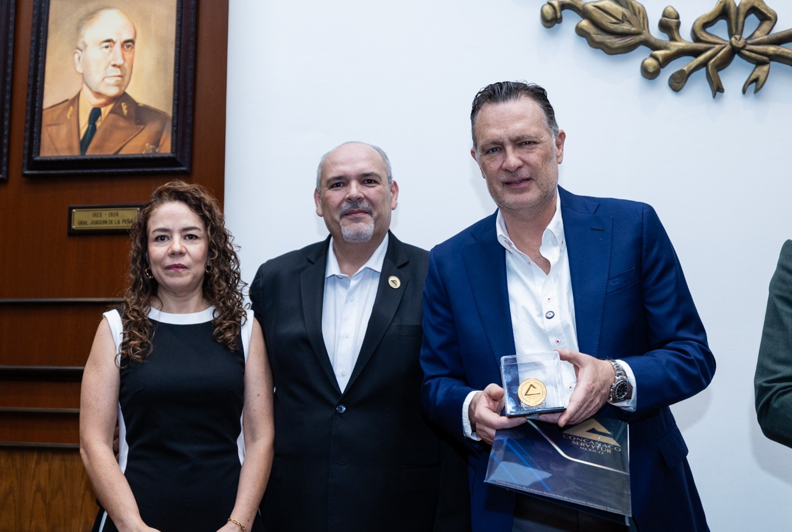 Dentro del marco de las celebraciones por el centenario de la fundación de este órgano colegiado que actualmente integra cerca de 30 mil comercios y prestadores de servicios en el estado, el mandatario fue honrado con la entrega de la moneda conmemorativa de la Confederación de Cámaras Nacionales de Comercio, Servicios y Turismo de los Estados Unidos Mexicanos, en reconocimiento a su compromiso con el progreso de la entidad.
