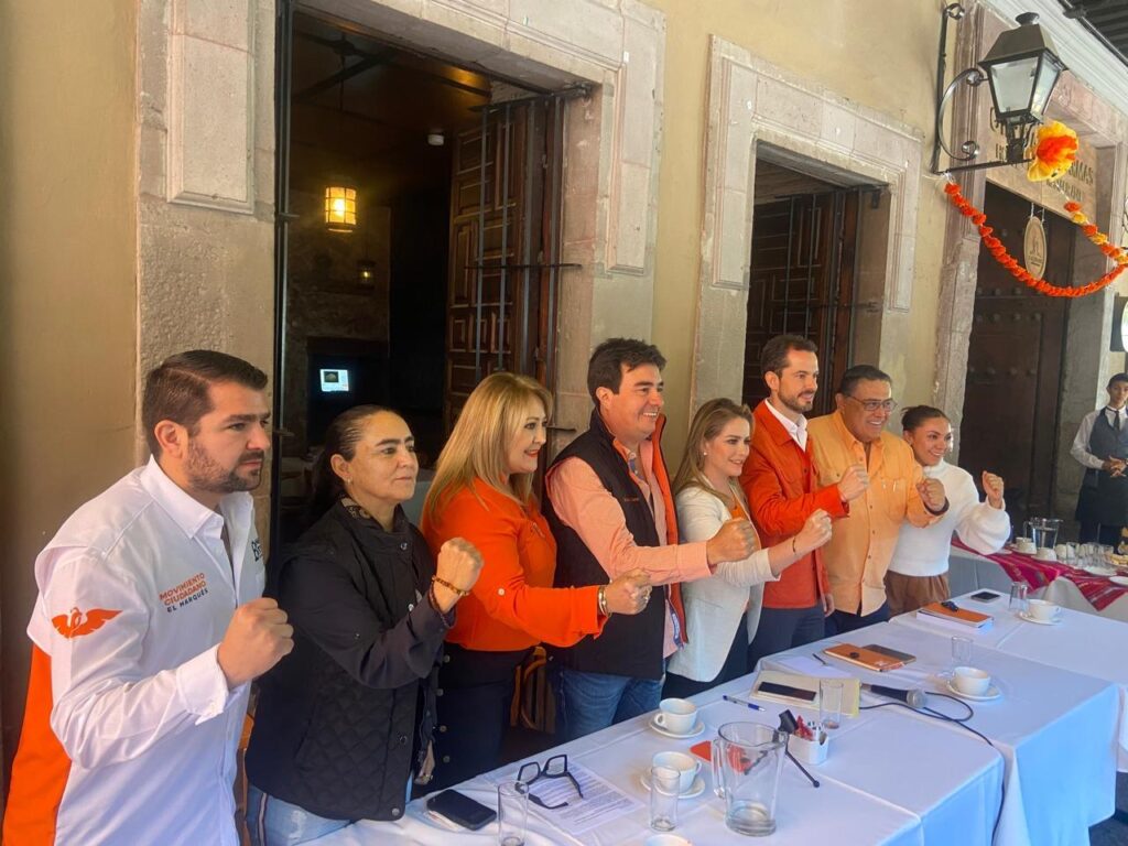 Los dirigentes y principales figuras de Movimiento Ciudadano en Querétaro, tercera fuerza local con 5.9 por ciento de las preferencias según la encuesta de Demoscopia Digital y La Jornada, publicada en este espacio el lunes, se reunieron ayer en un restaurante de nuestra Plaza de Armas. En la mesa estuvieron, entre otros, Teresita Calzada, Paulina Aguado, Armando Rivera y Paul Ospital.