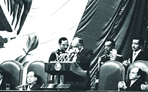 A tiempo fue llevado por los miembros del Estado Mayor a San Lázaro para presidir la sesión en la que José López Portillo anunció la nacionalización bancaria, medidas sobre el control del tipo de cambio y la descentralización del Banco de México. “Ya nos saquearon -sentenció con lágrimas- México no se ha acabado. No nos volverán a saquear”.