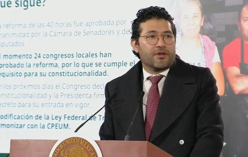 Durante la mañanera, el funcionario anunció que la reforma constitucional que reduce la semana laboral de 48 a 40 horas será promulgada mañana mediante su publicación en el Diario Oficial de la Federación, tras su aprobación unánime en la Cámara de Diputados y el Senado y el aval de 24 Congresos locales.