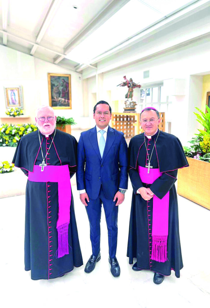 Cercano a la Iglesia, el presidente de Corregidora Josué David Guerrero fue recibido el viernes en la nunciatura de la CDMX con motivo del inicio del pontificado del Papa León XIV. Ahí fue captado con el secretario de Relaciones con los Estados y Organismos Internacionales de la Santa Sede, monseñor Paul R. Gallagher y el nuncio apostólico Joseph Spiteri.